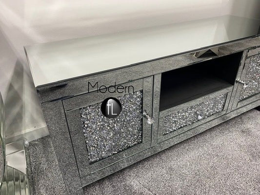 Large 150cm Mirrored Crushed Diamond TV Stand Sparkle Glitz TV Unit Up to 70' TV