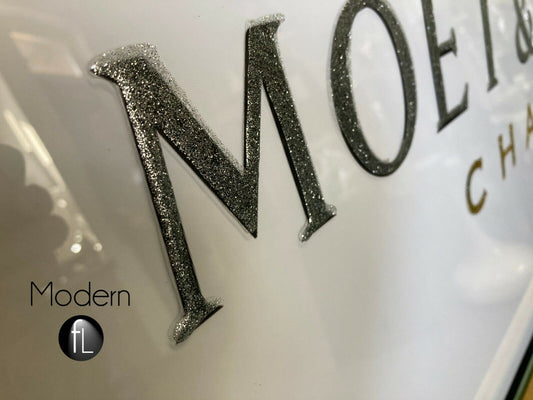 White 3D Moet and Chandon mirrored Picture with sparkle glitter