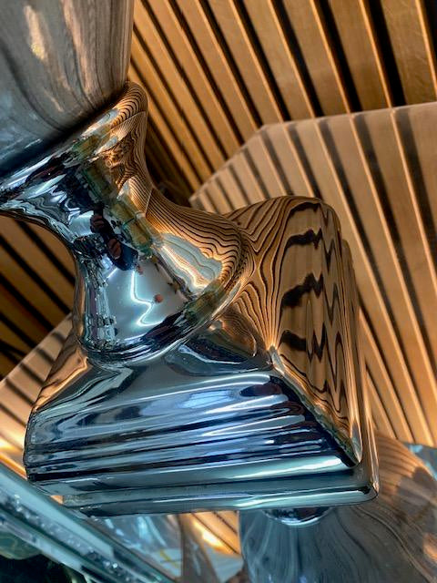 Stunning dark grey marble effect table lamp on a silver chrome base with a grey round pleated shade
